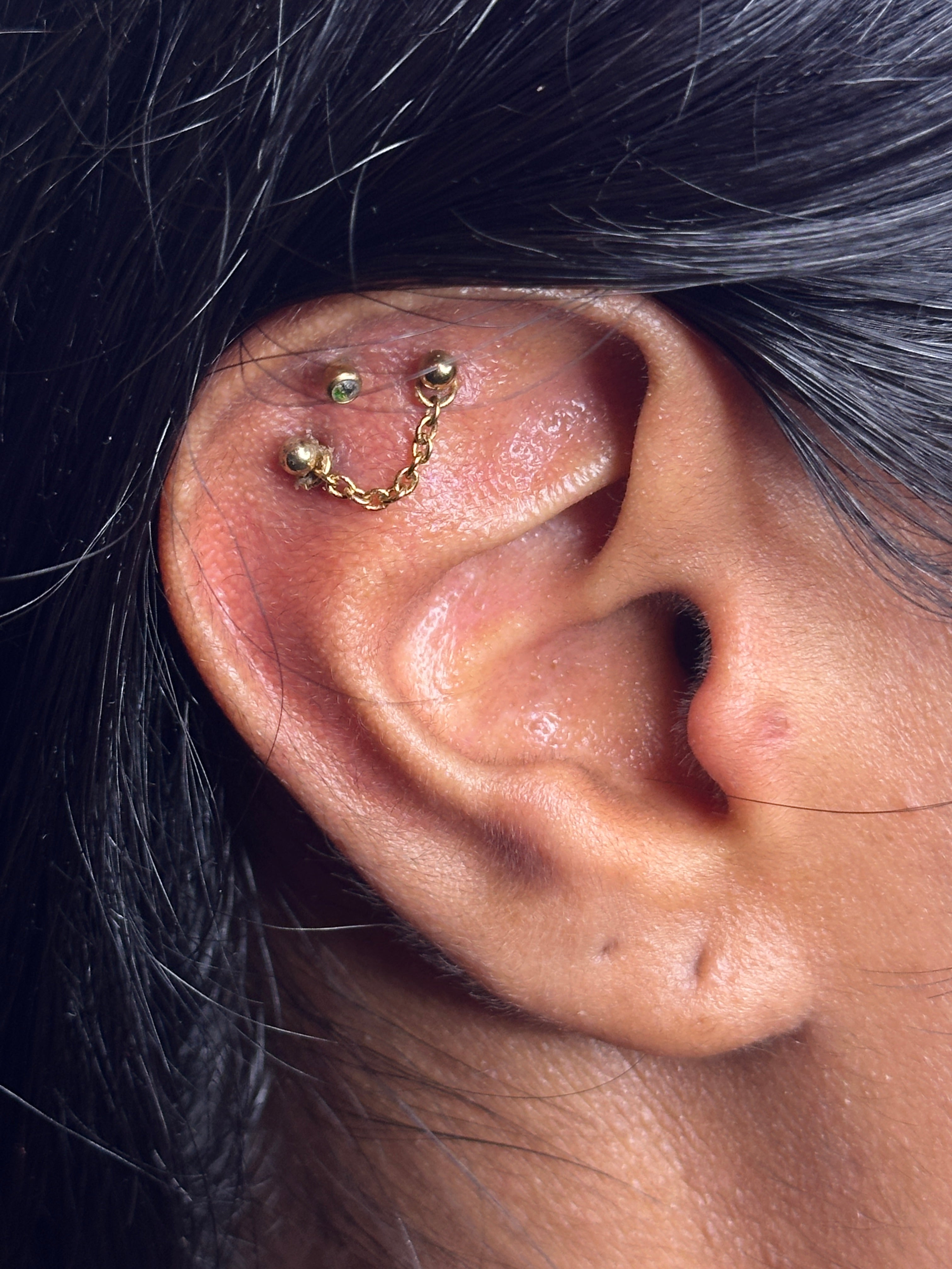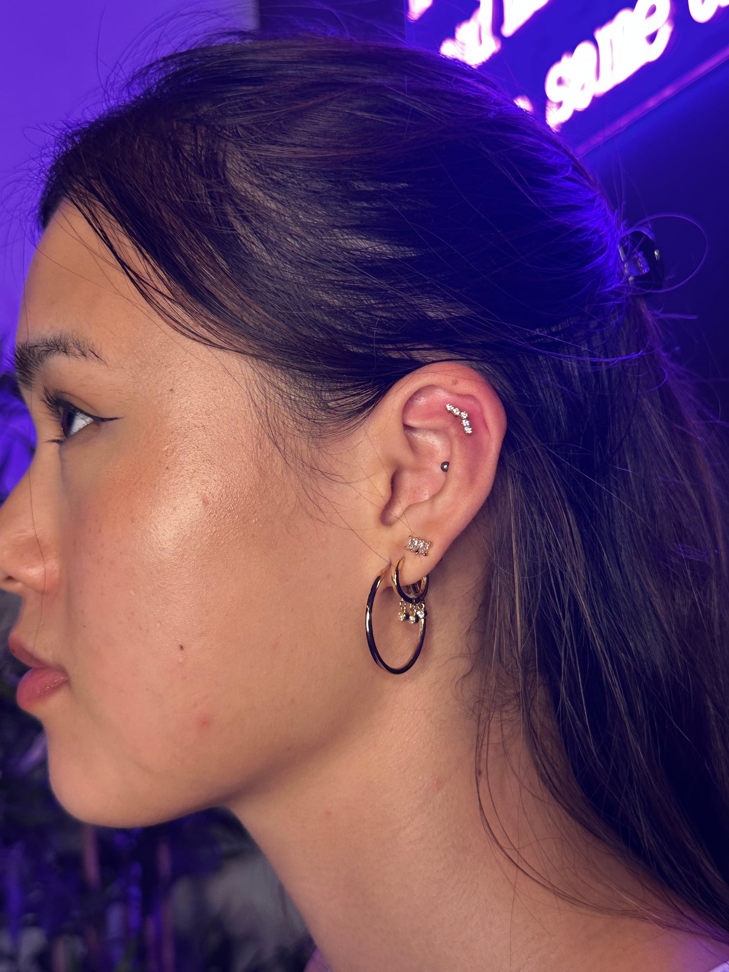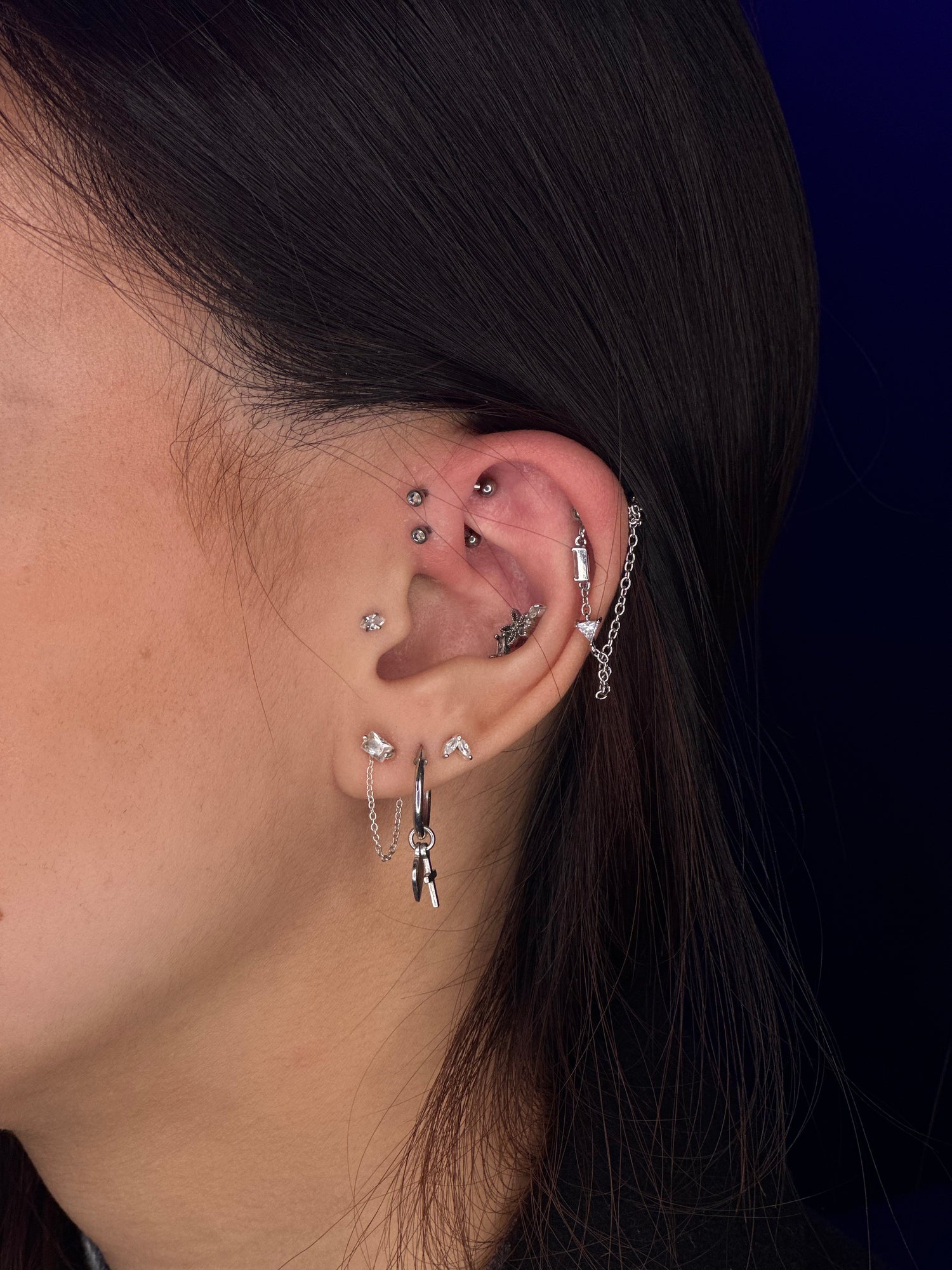 For everyone, whether you are starting from scratch or have existing ear piercings, we cater to everyone! If you already have piercings, we can take your current style to the next level by replacing the jewelry with more refined pieces, adding new piercings, or of course both. And for those starting from scratch, welcome to the cool side where we help you create your unique ear style.