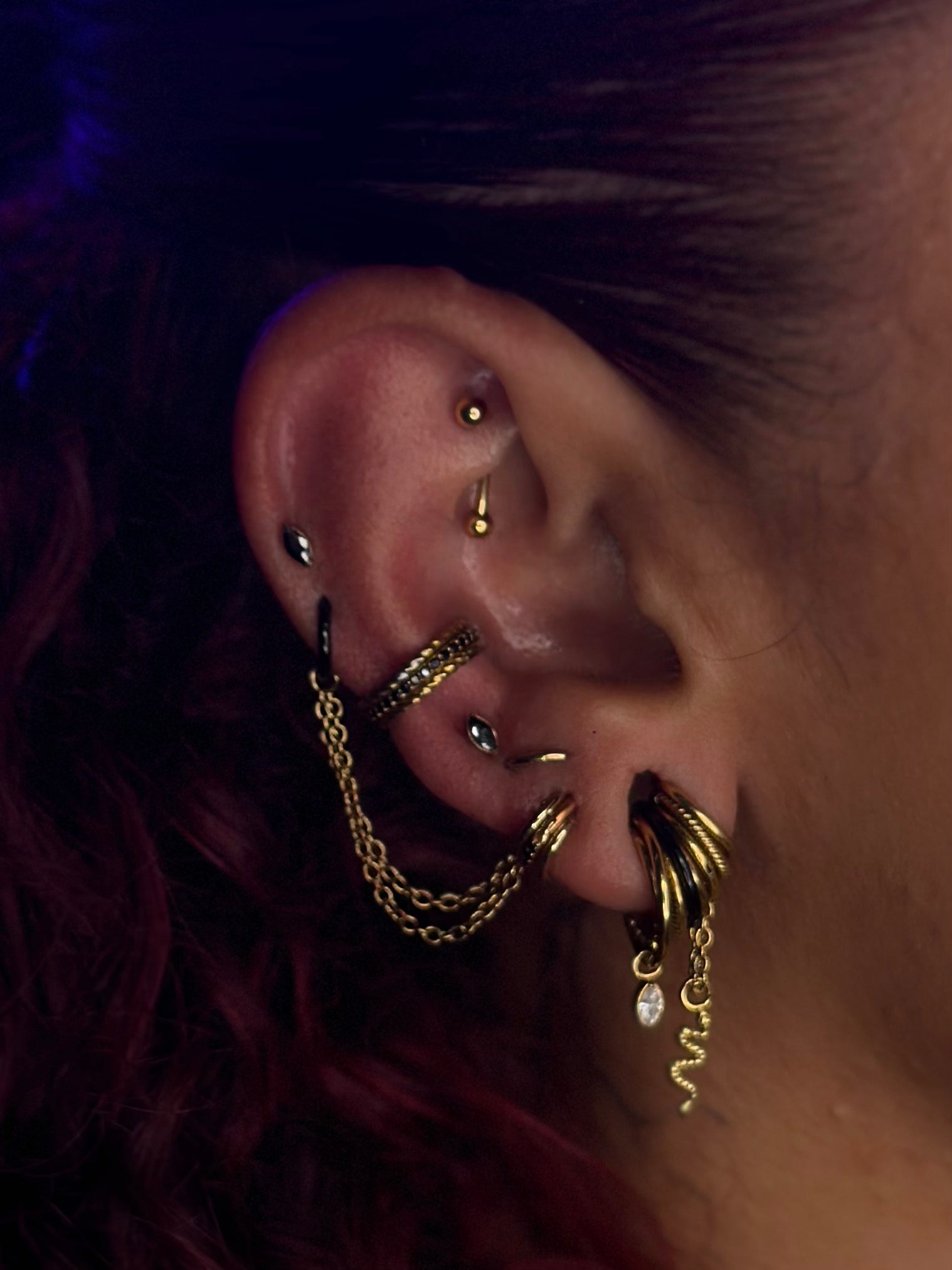 double helix - rook - conch - tragus.