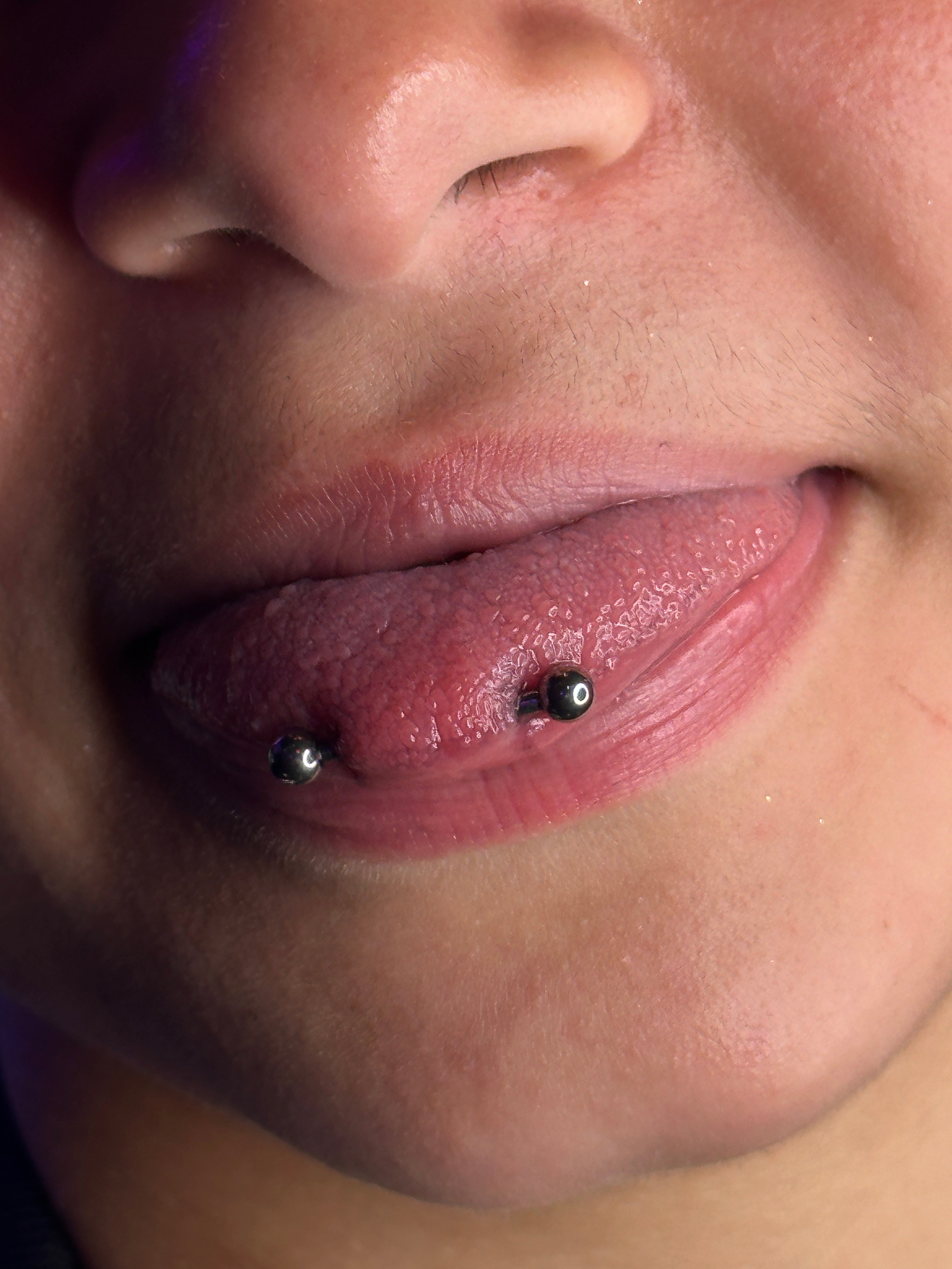 - Door de plaatsing van de piercing dicht bij de punt van je tong kan praten in het begin lastig zijn, wat ook kan leiden tot licht geslis.